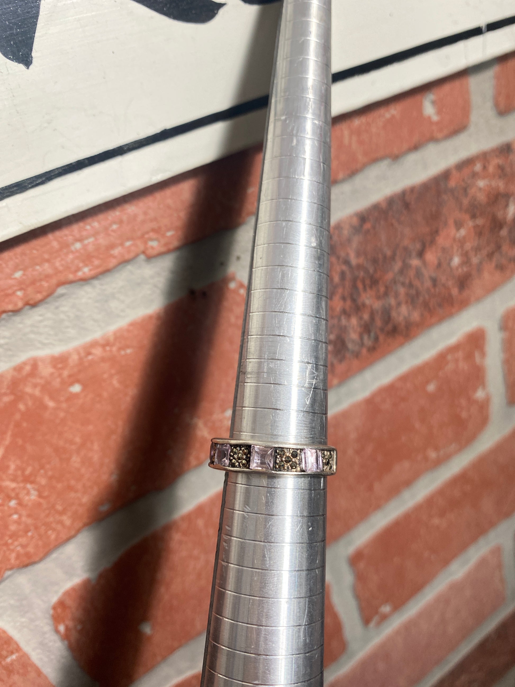 .925 Sterling Silver Onyx Amethyst Gemstone Studded Band Ring Sz 11.5”