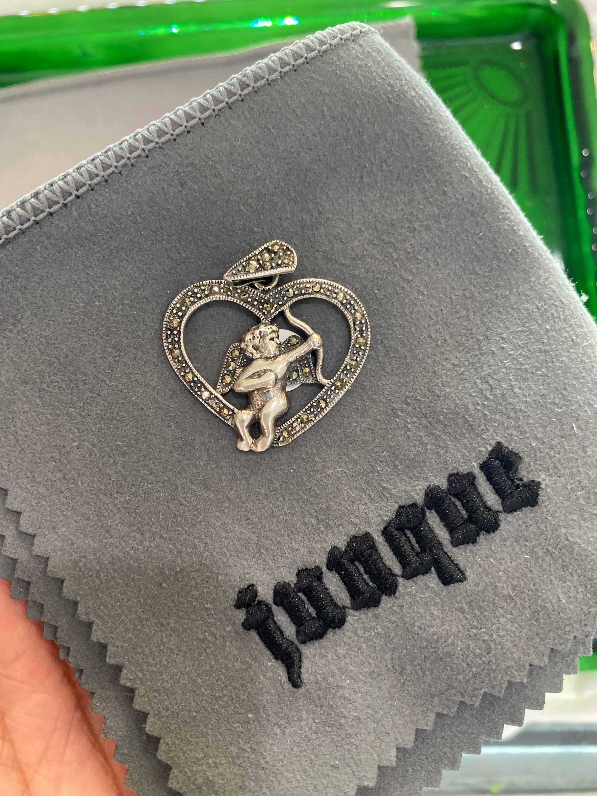 . 925 Sterling Silver Onyx Cupid Heart Pendant