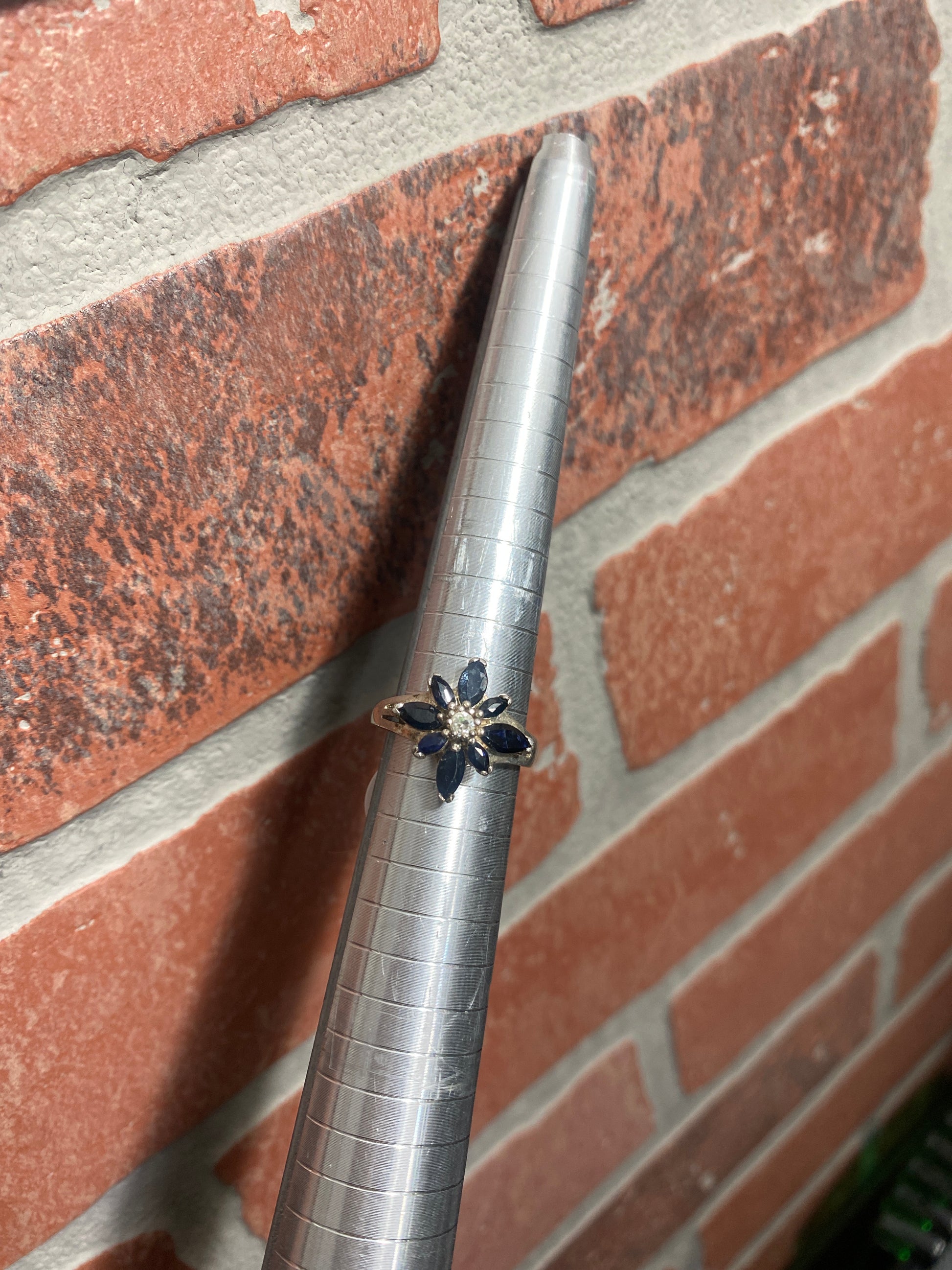 .925 Sterling Silver Onyx Flower Ring Sz 7”