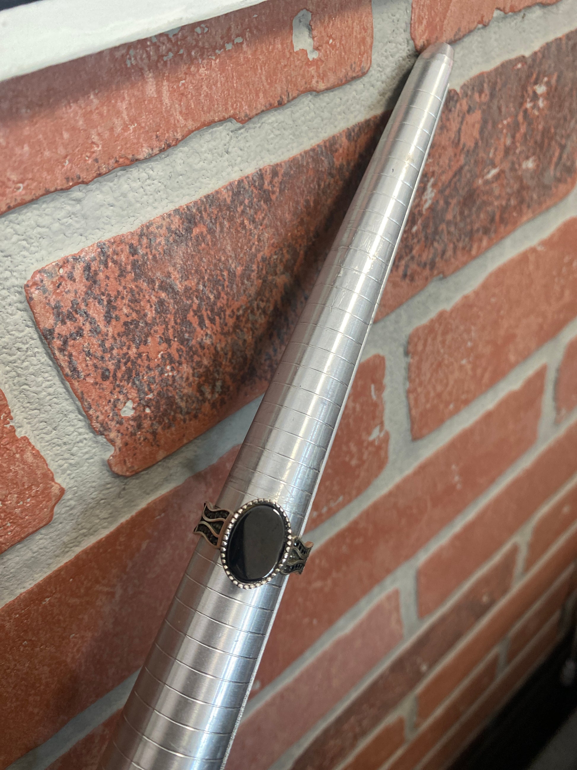 .925 Sterling Silver Onyx Gemstone Studded Ring Sz 11