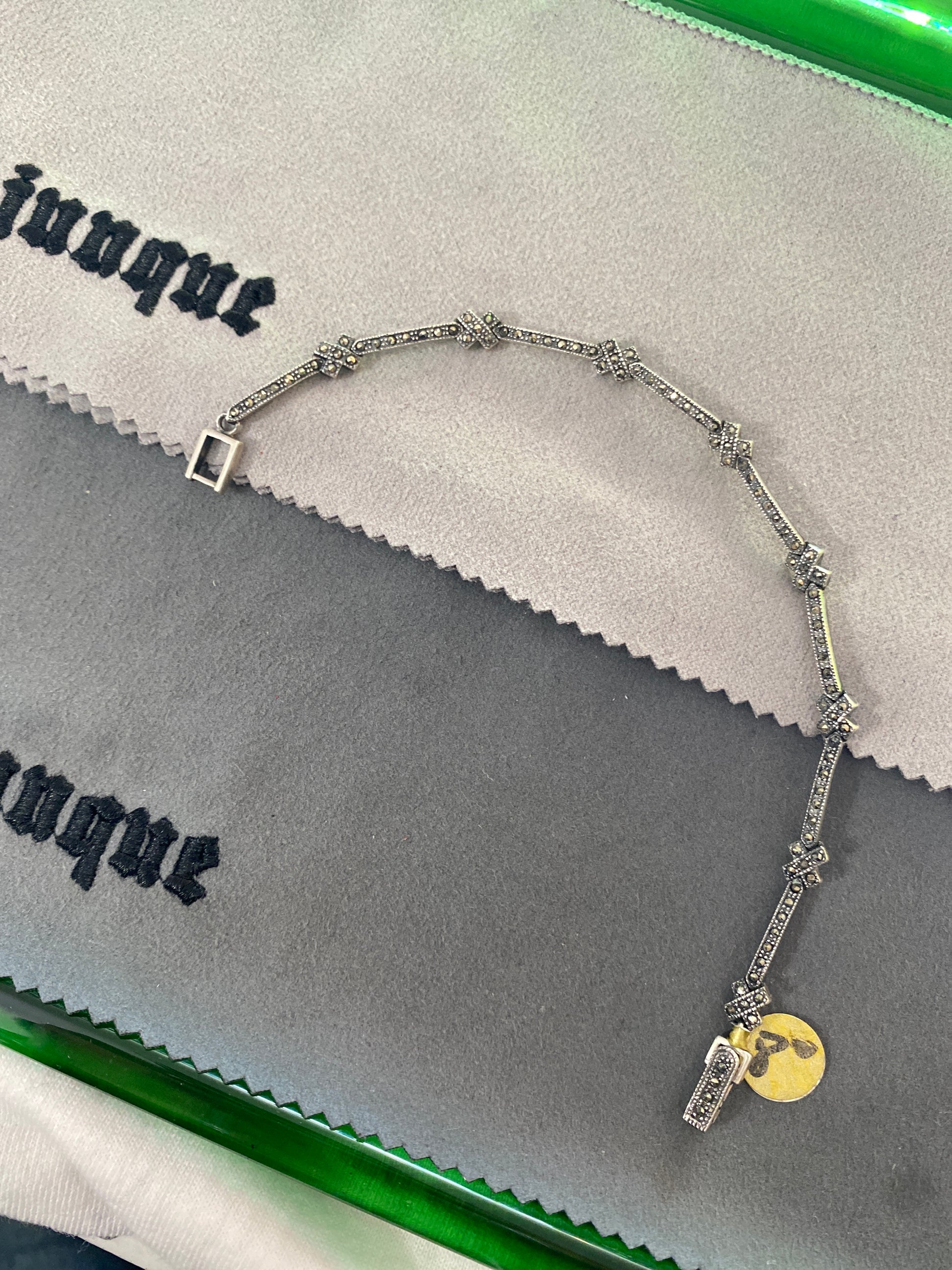 .925 Sterling Silver Onyx Opal Link Bracelet Sz 8”