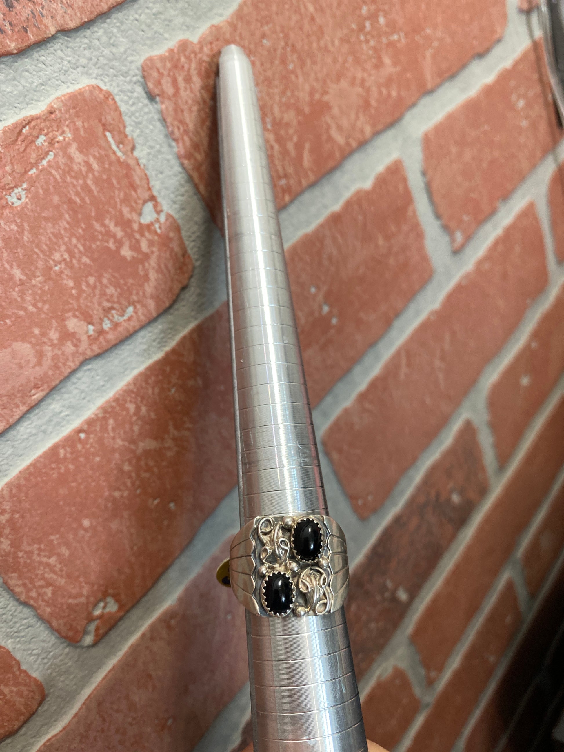 .925 Sterling Silver Onyx Pearl Square Ring Sz 12.5”