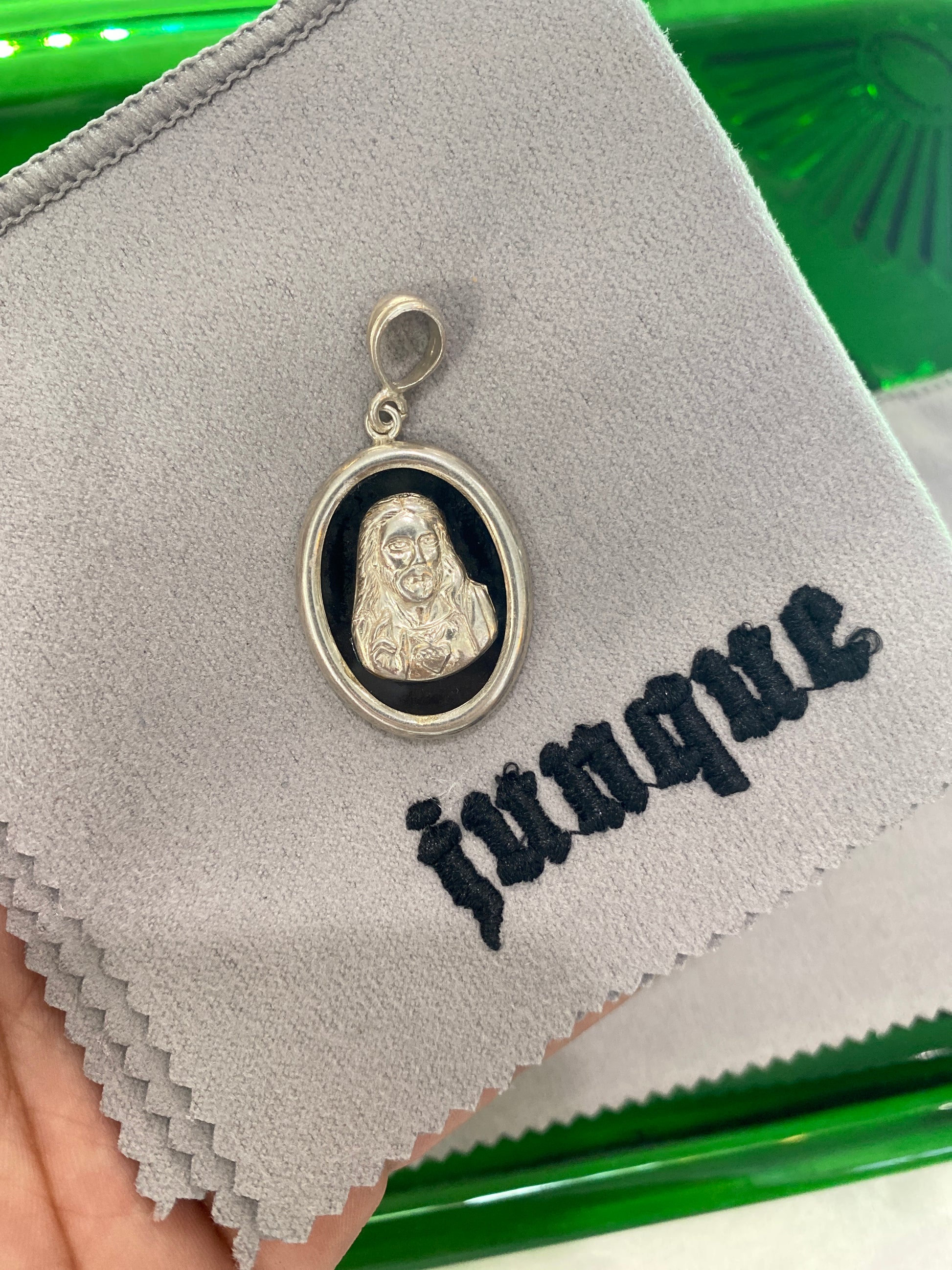 .925 Sterling Silver Oval Onyx Jesus Head Pendant