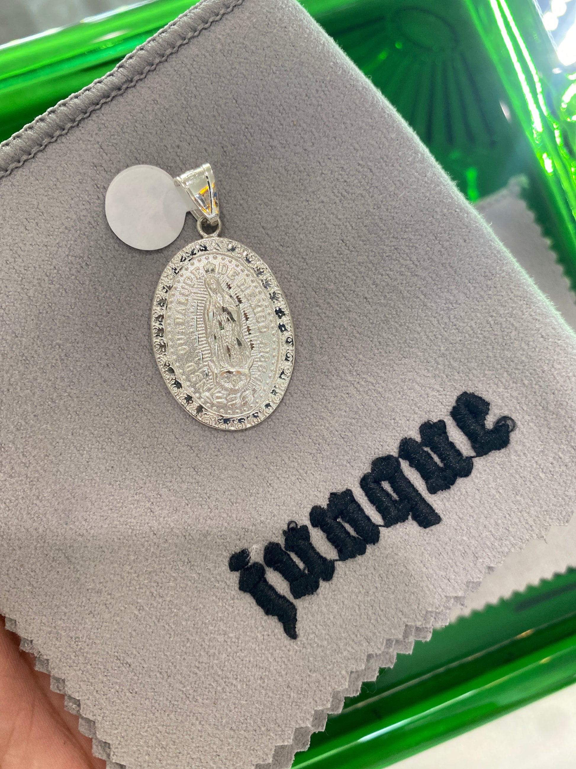 .925 Sterling Silver Oval Virgin Mary Virgencita De Guadalupe Double Sided Pendant