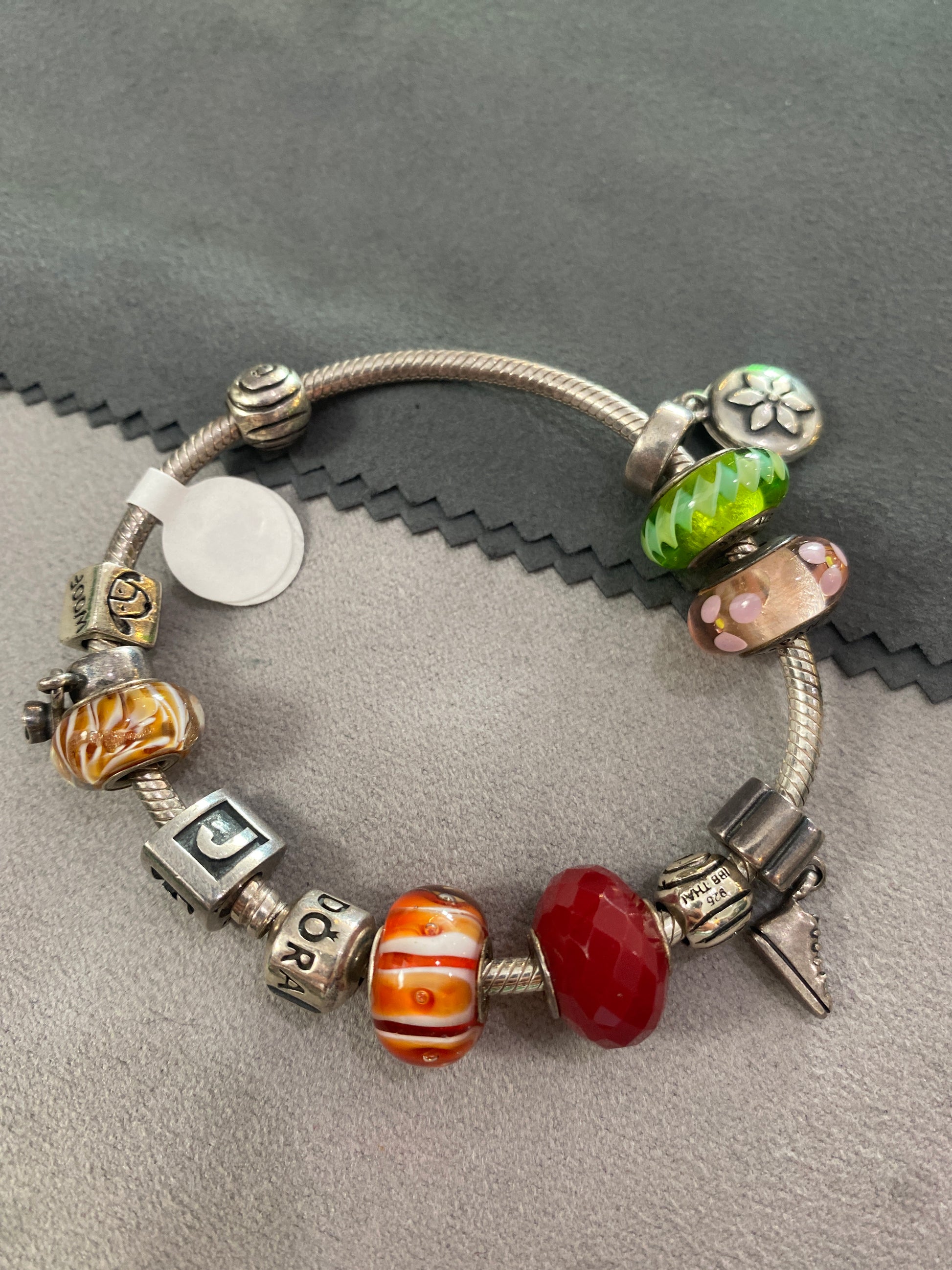 .925 Sterling Silver Pandora Bracelet with pendants charms