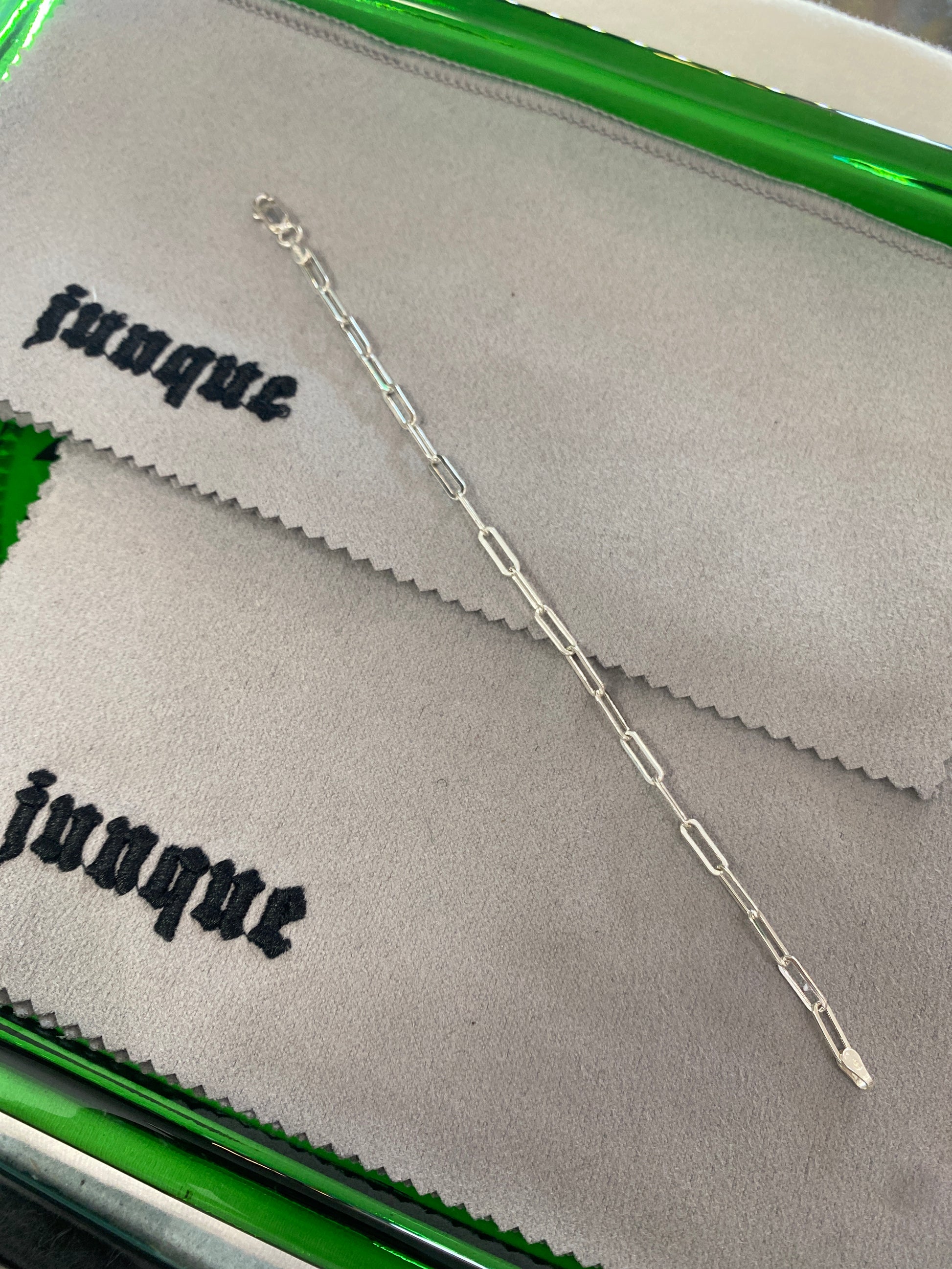 .925 Sterling Silver Paper Clip Link Bracelet Sz 7”