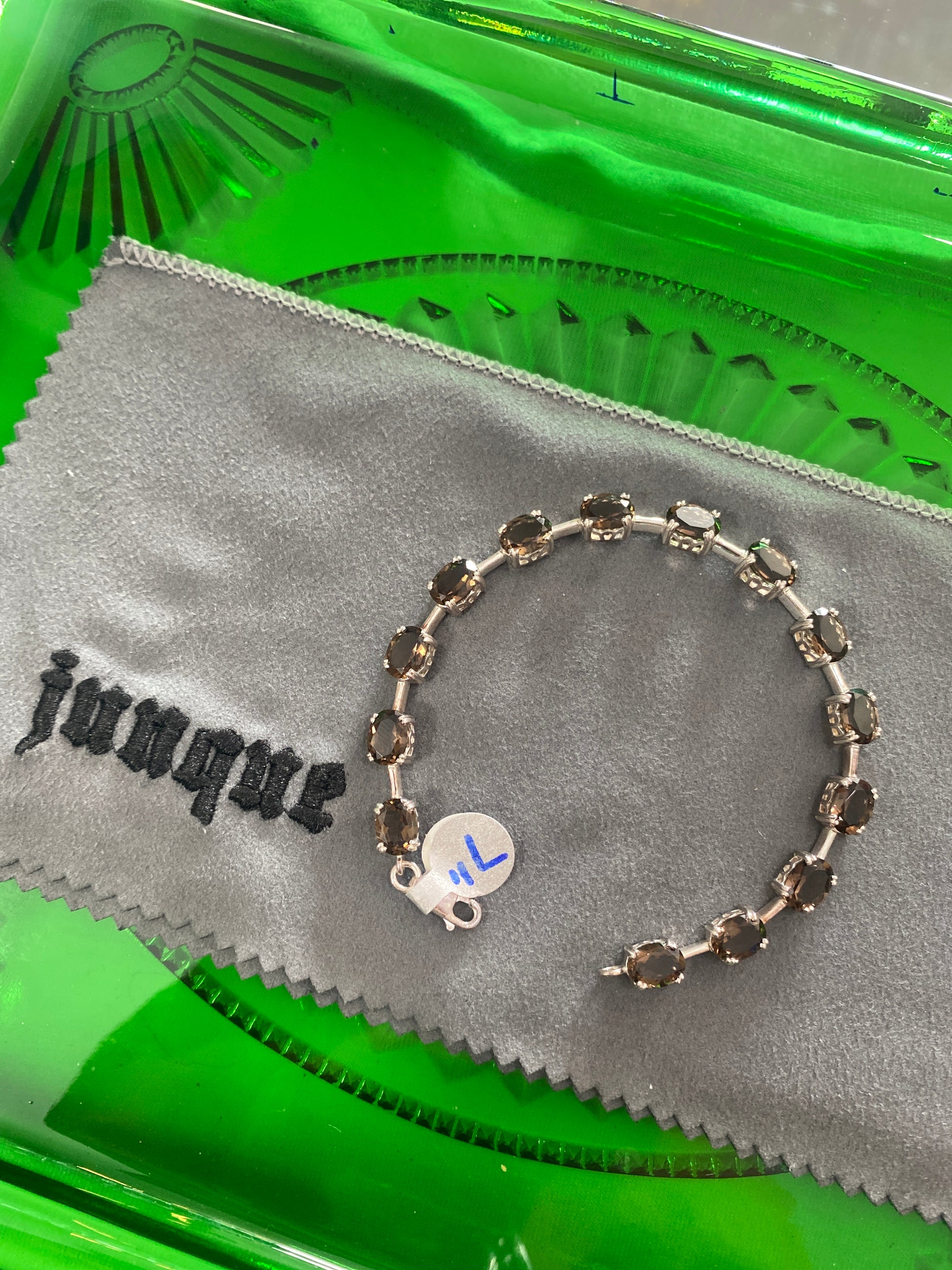 .925 Sterling Silver Smokey Gemstone Bracelet 7”