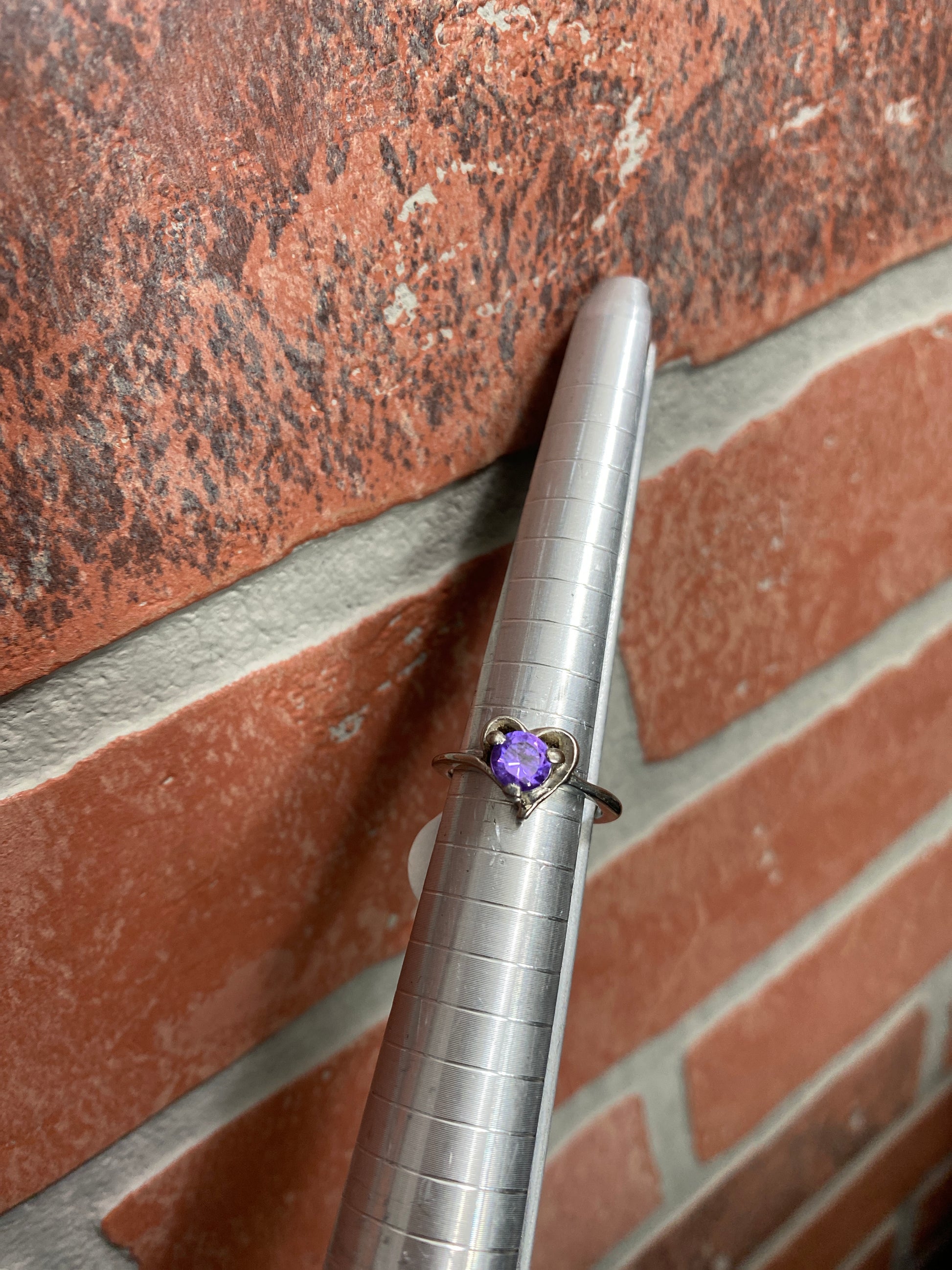 .925 Sterling Silver Purple Heart Stone Ring Sz 5.5”
