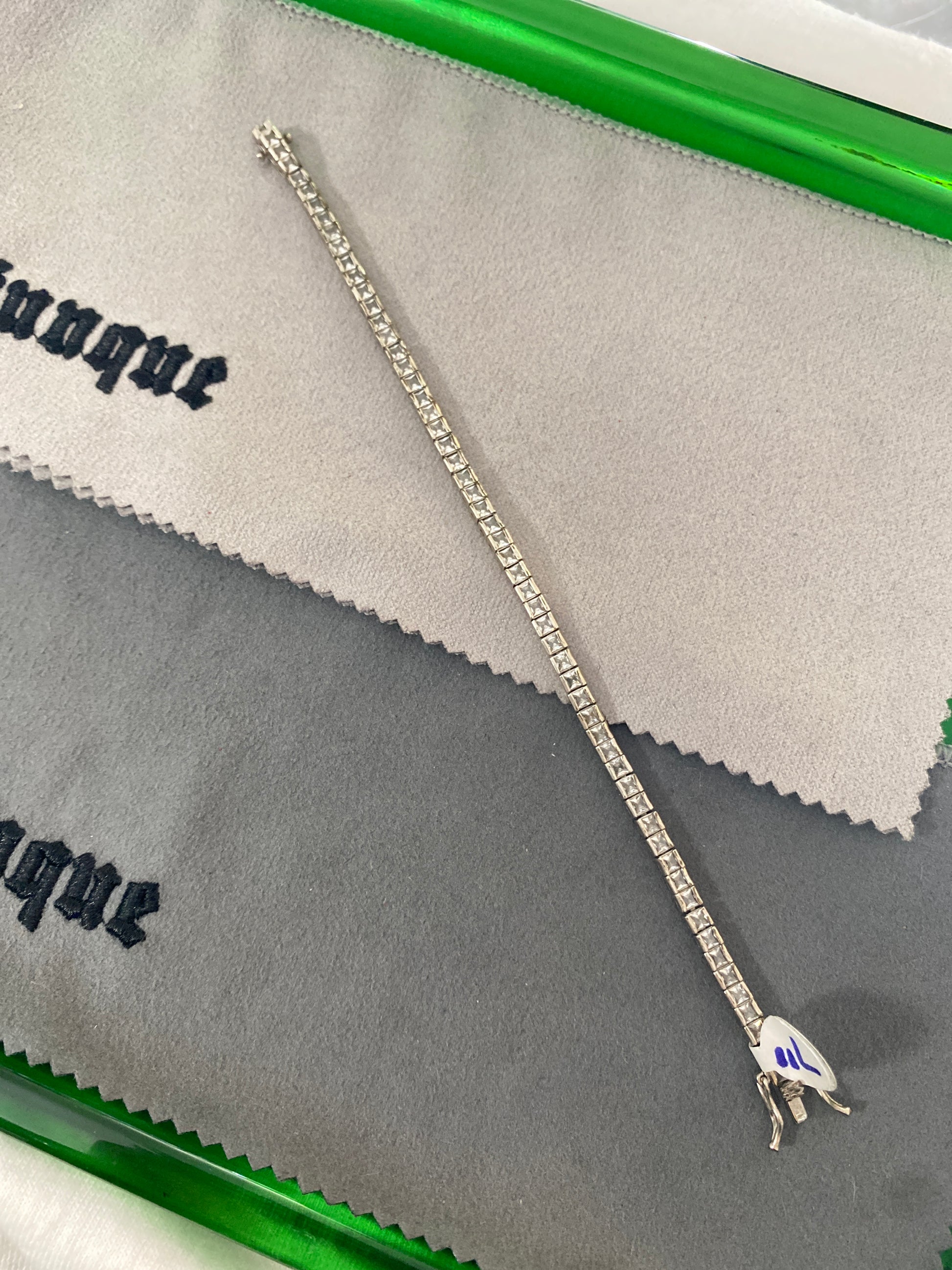 .925 Sterling Silver Quartz Tennis Studded Link Bracelet Sz 7”