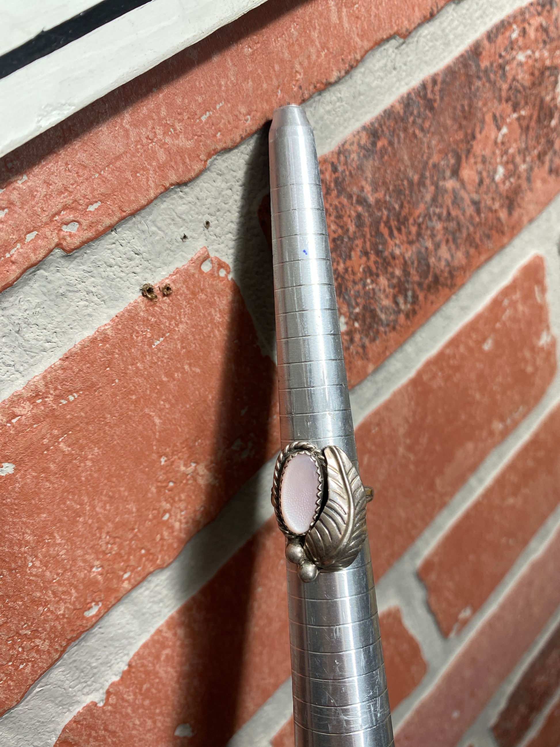 .925 Sterling Silver Rose Quartz Feather Ring Sz 7”