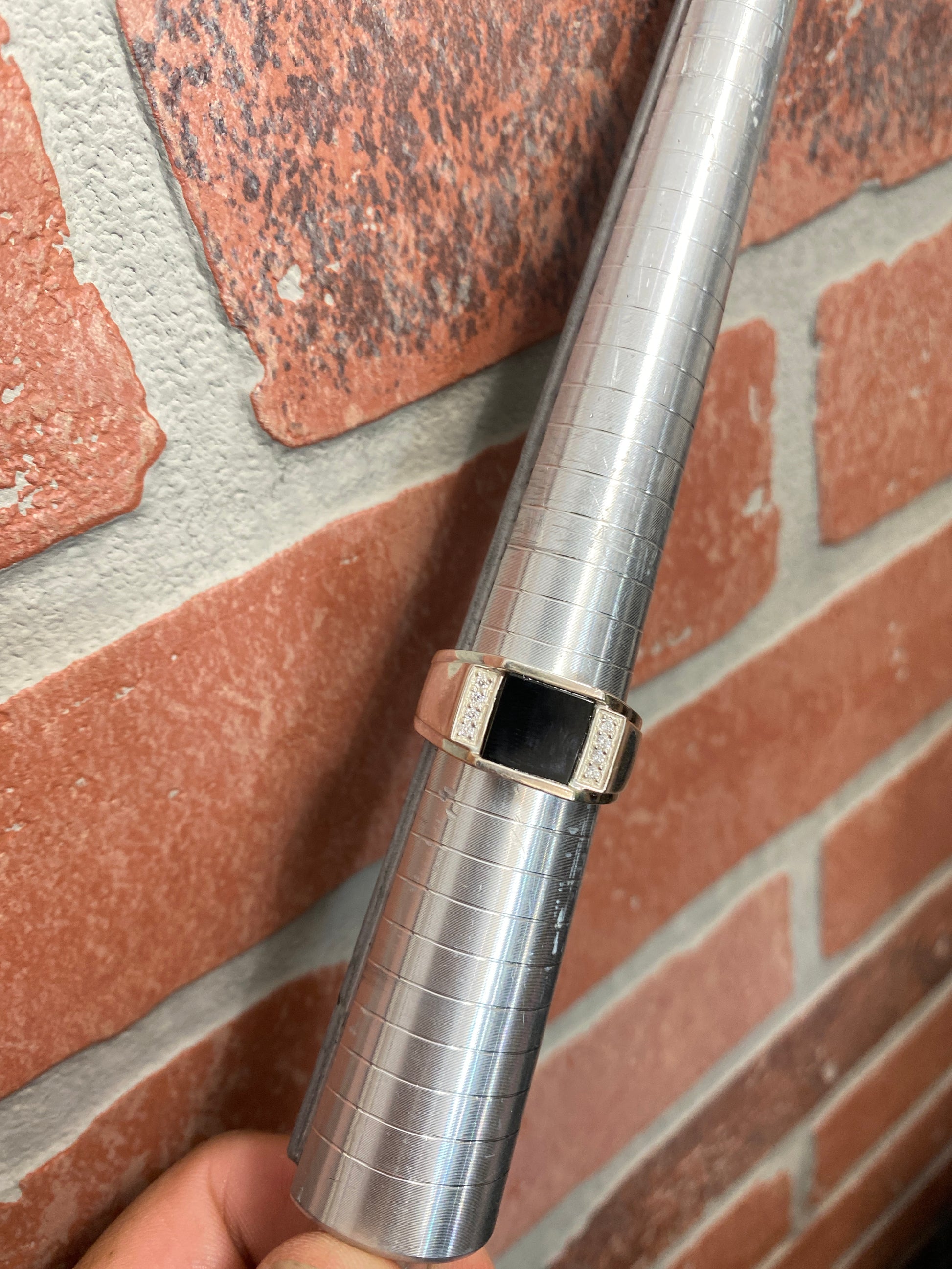 .925 Sterling Silver Square Onyx CZ Ring Sz 12”