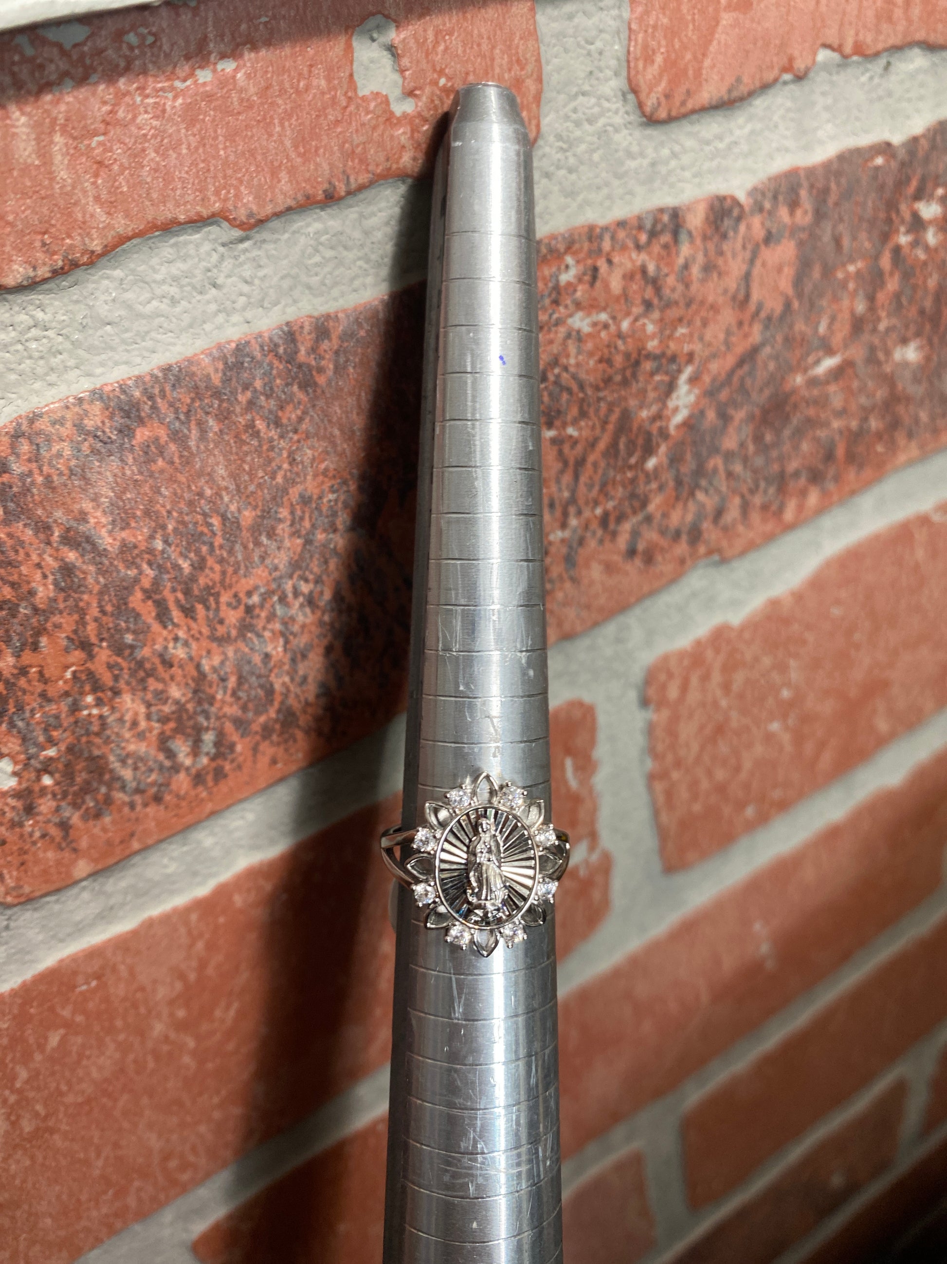 .925 Sterling Silver Studded CZ Virgin Mary Virgencita Ring Sz 7”