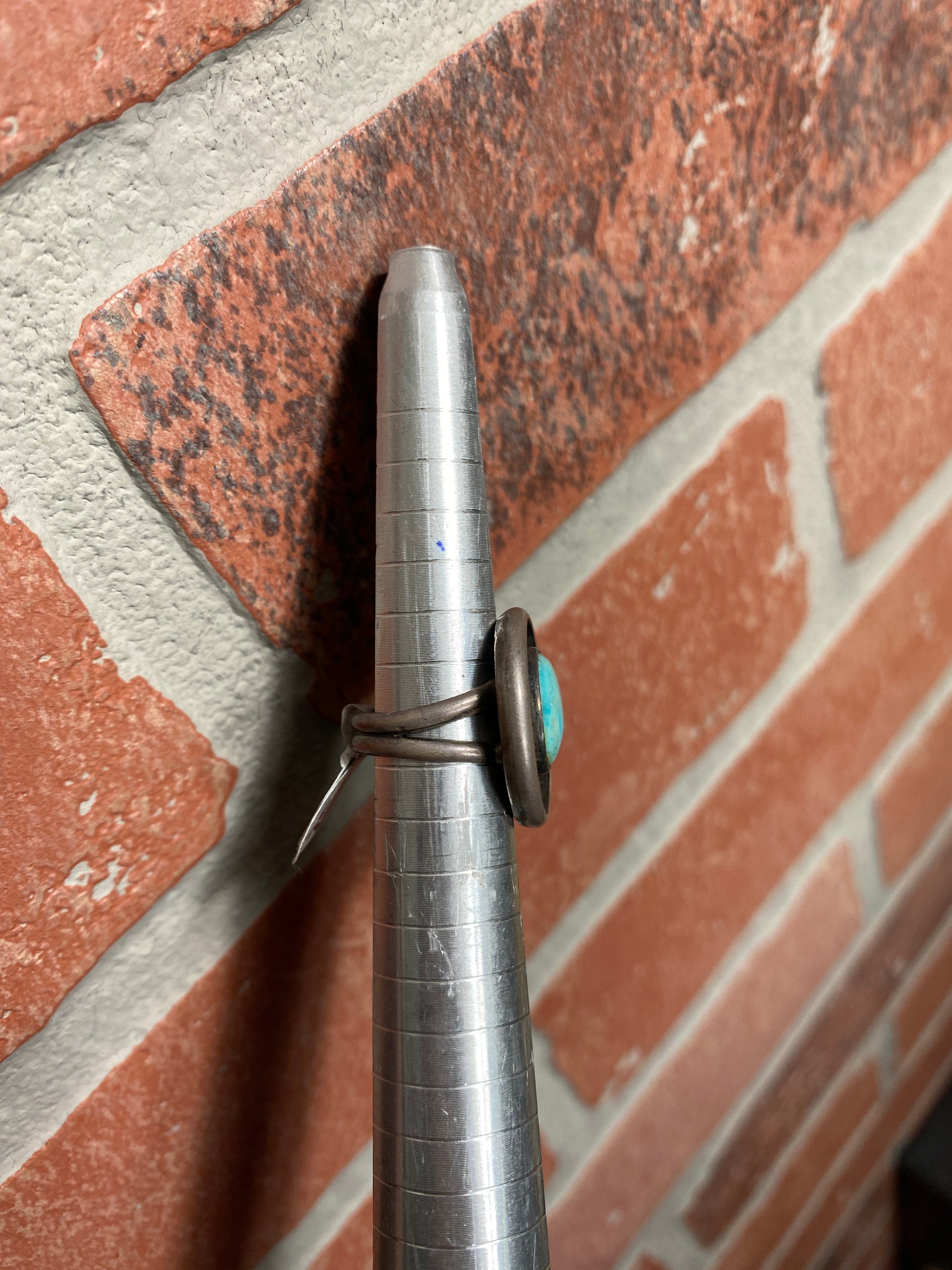 .925 Sterling Silver Turquoise Circle Cocktail Ring Sz 5.5”