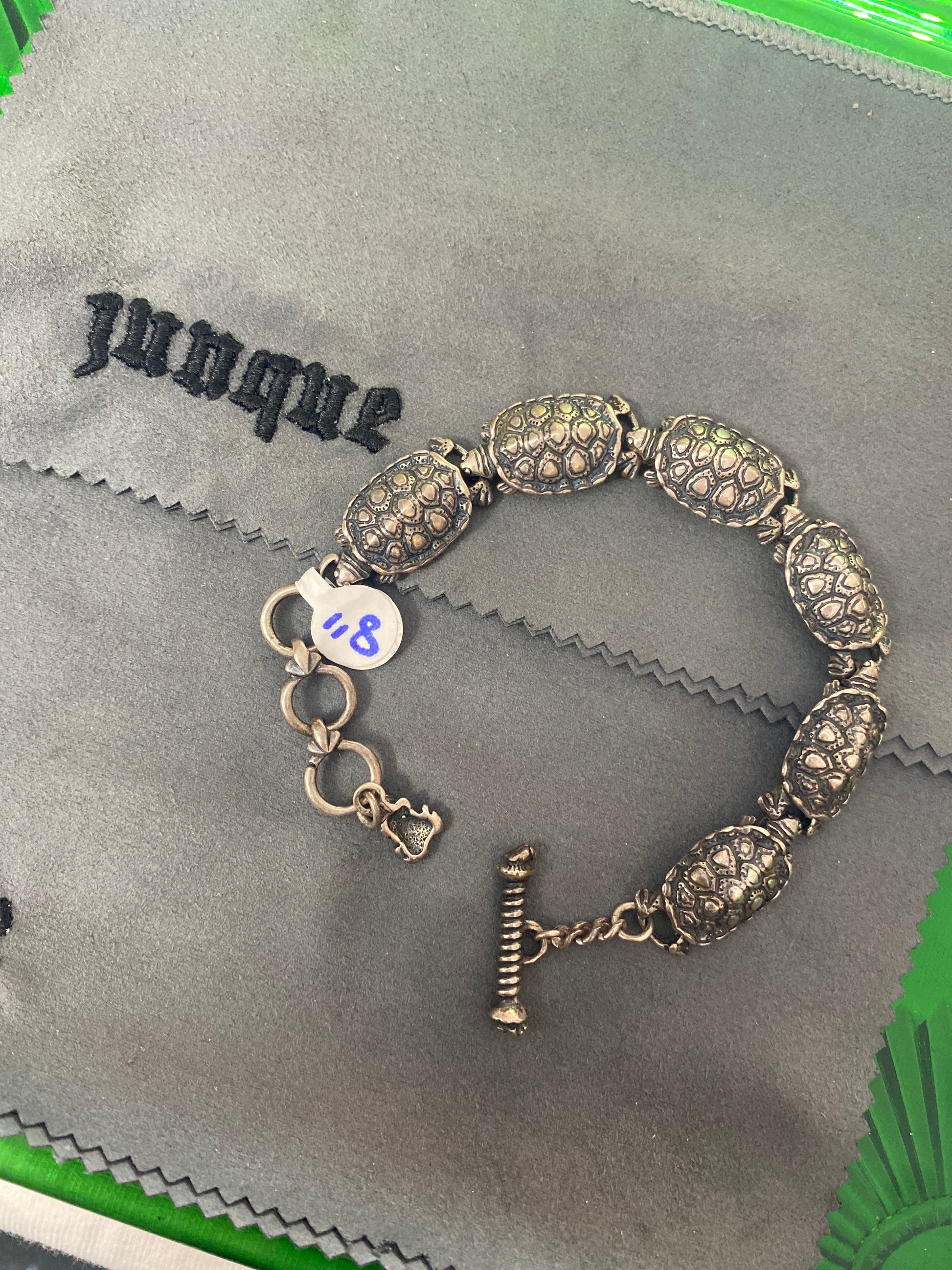 .925 Sterling Silver Turtle Shell Bracelet Sz 8”