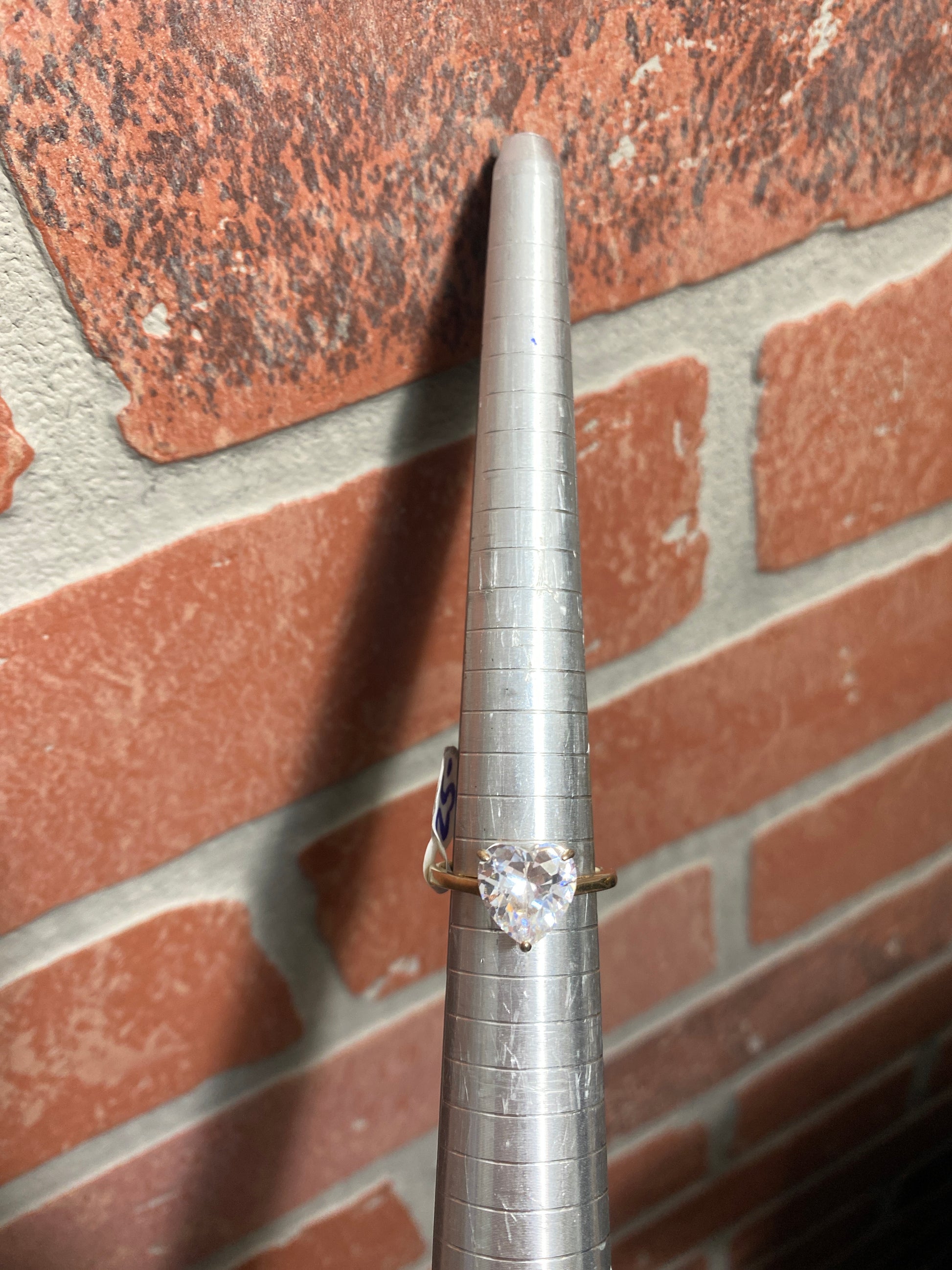 .925 Sterling Silver Yellow Gold Tone Studded Heart Ring Sz 8”