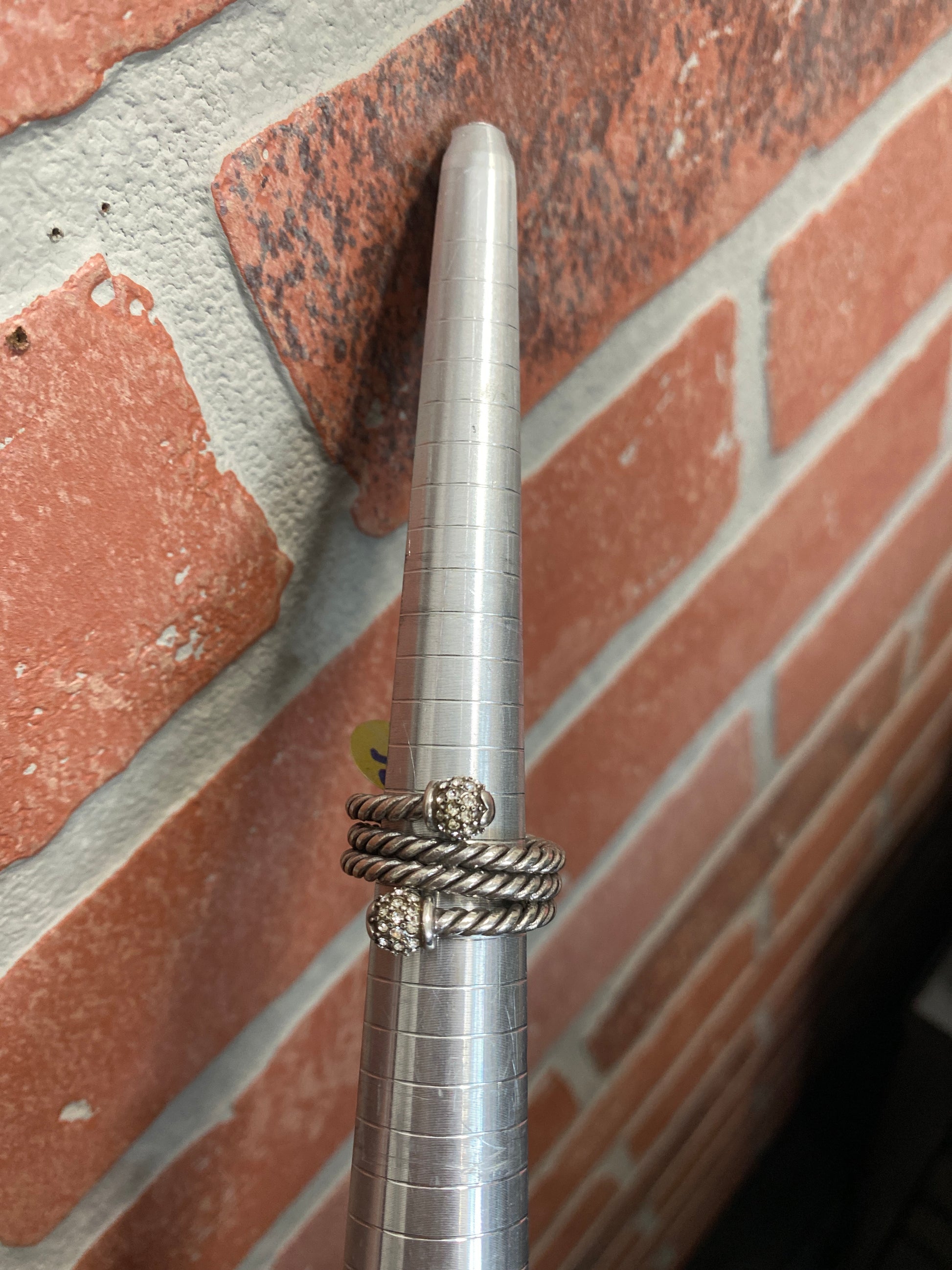 .925 Sterling Silver Rope Wrap Around Bead Ring Sz 8.5”