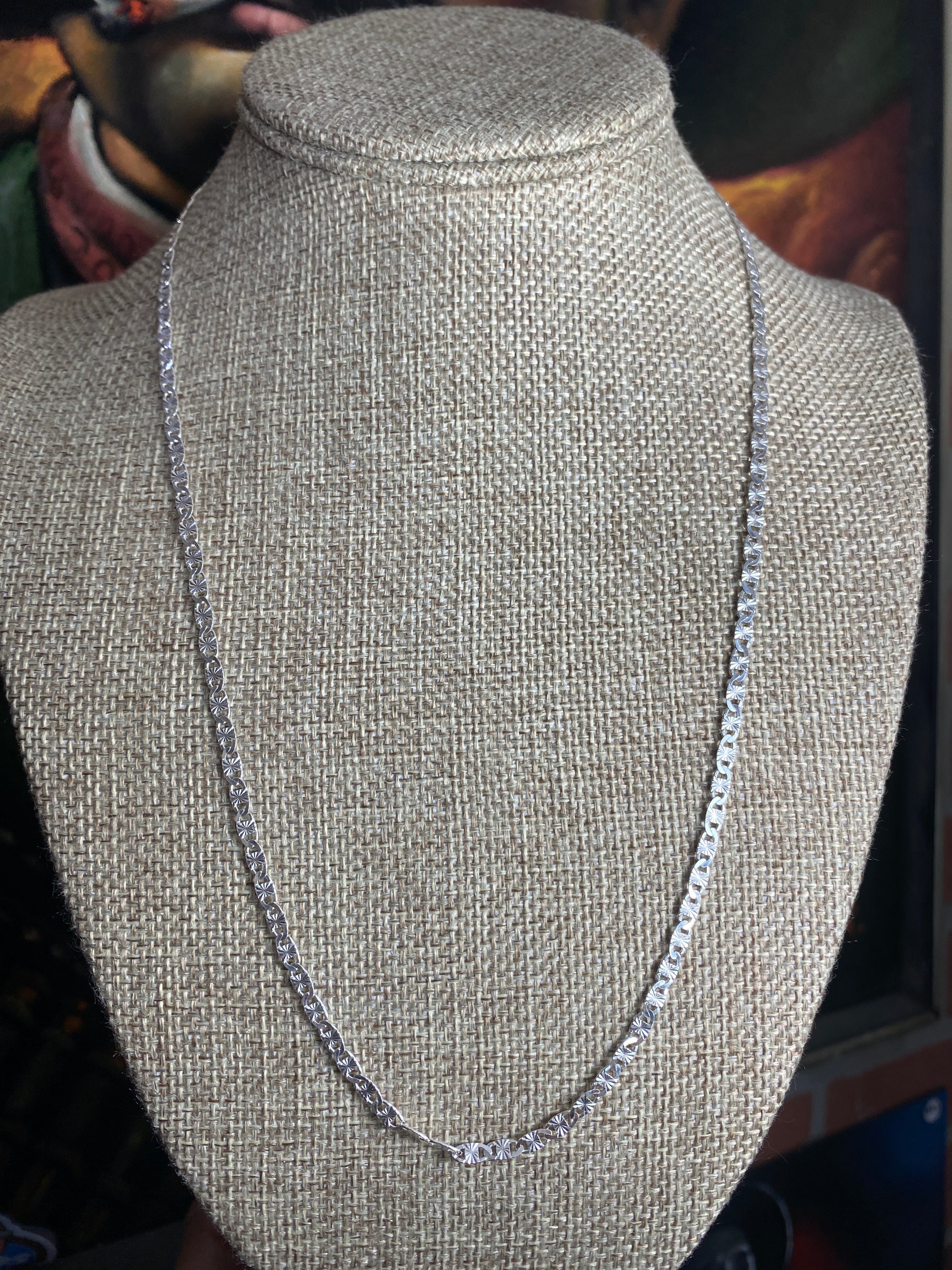 .925 Sterling Silver Flat Diamond Cut Gucci Link Chain 22”