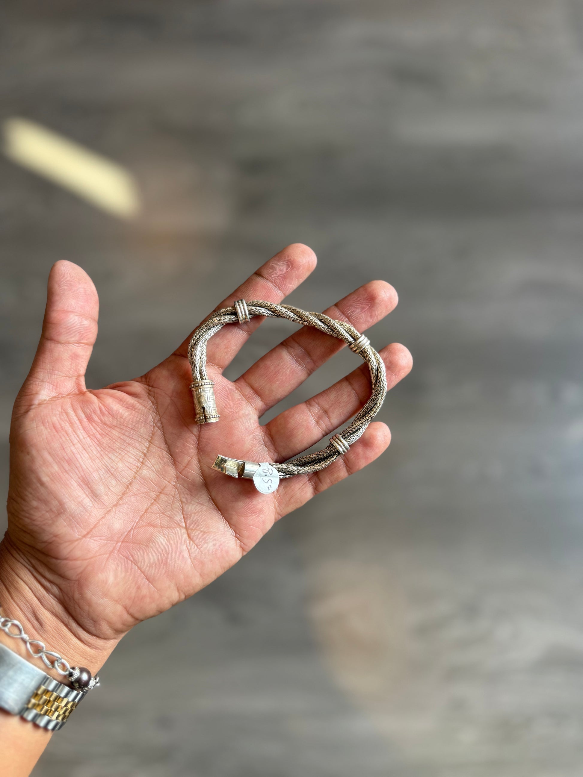 .925 Sterling silver solid twisted bar bracelet 8.5”