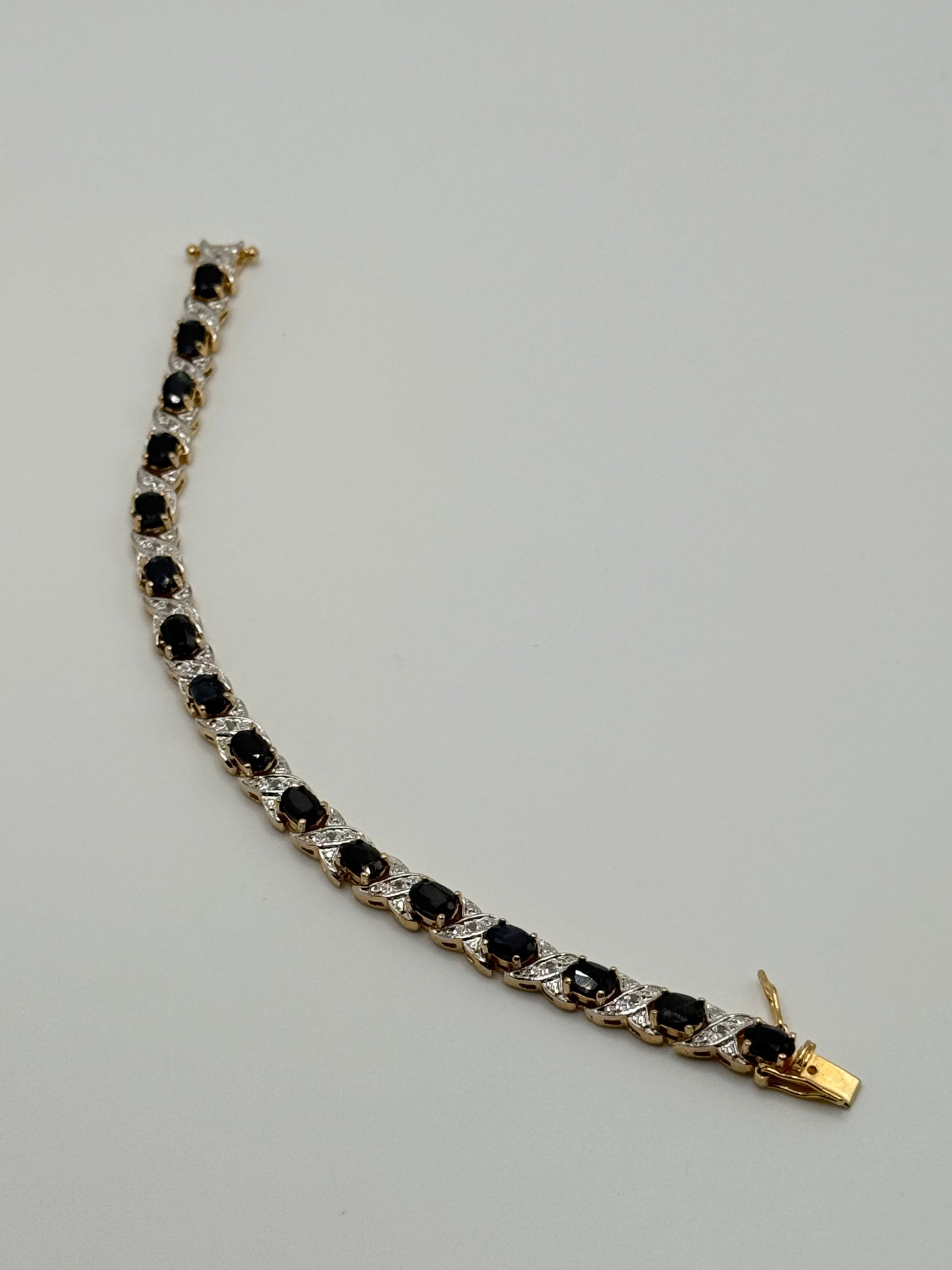 .925 Sterling Silver Black Onyx CZ Tennis Style Bracelet Gold Vermeil 7”