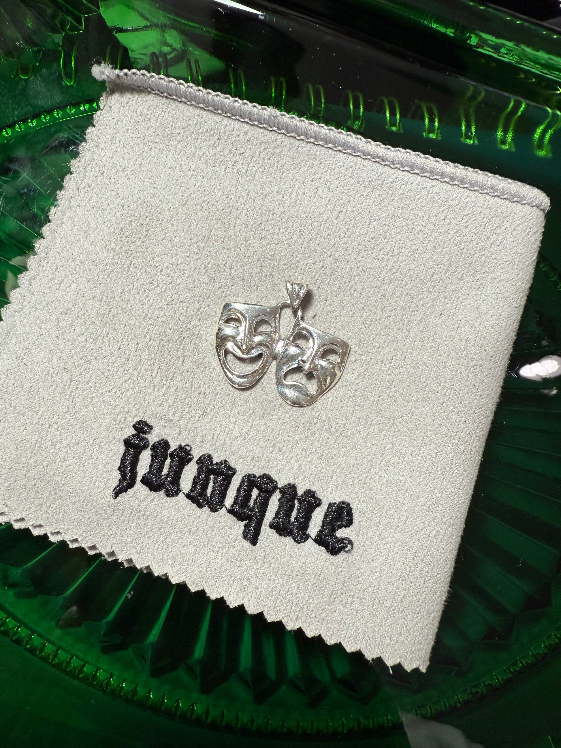 .925 Sterling silver smile now cry later drama face pendant