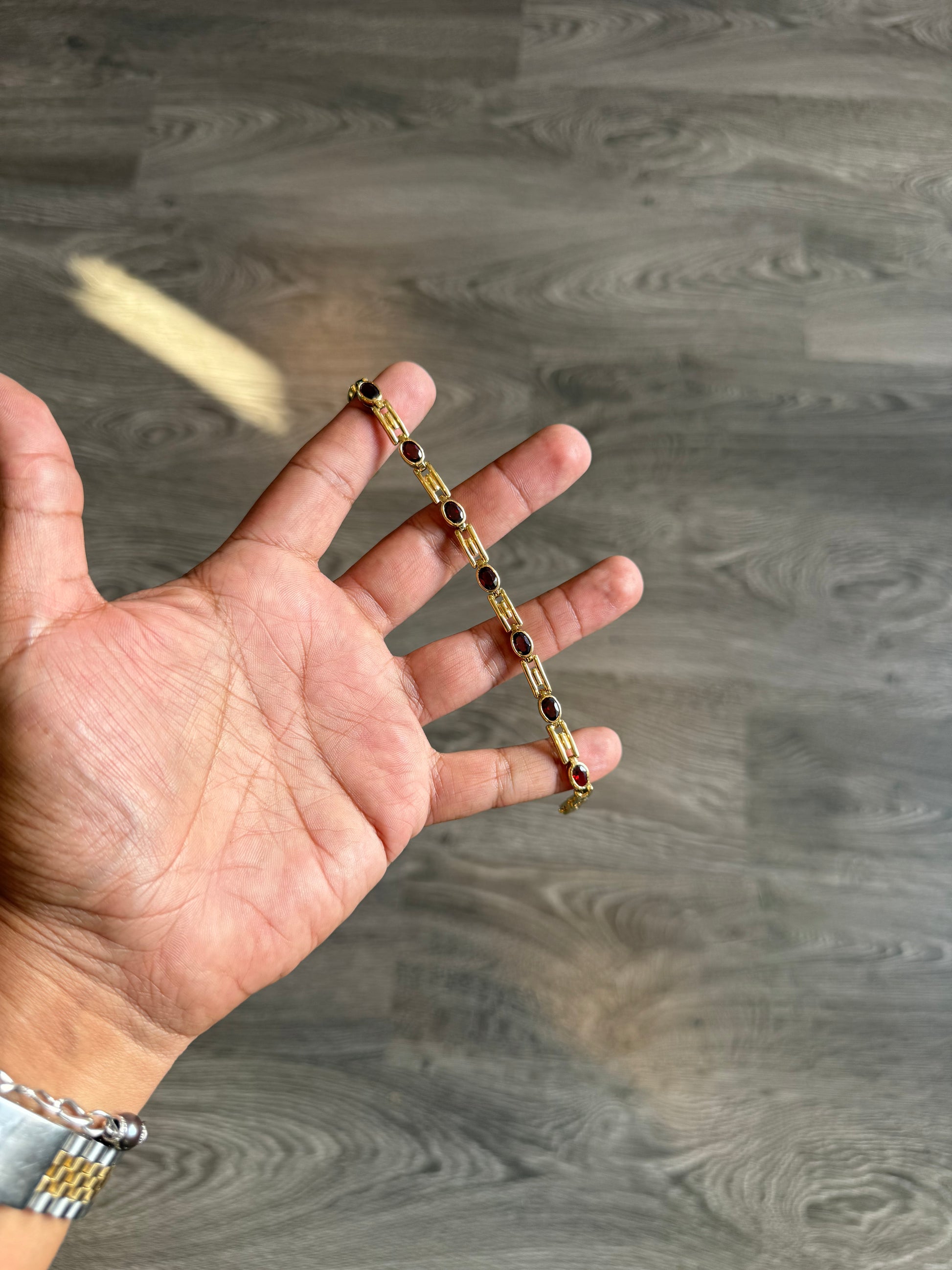 .925 Sterling silver yellow tone Garnett bracelet 8.5”
