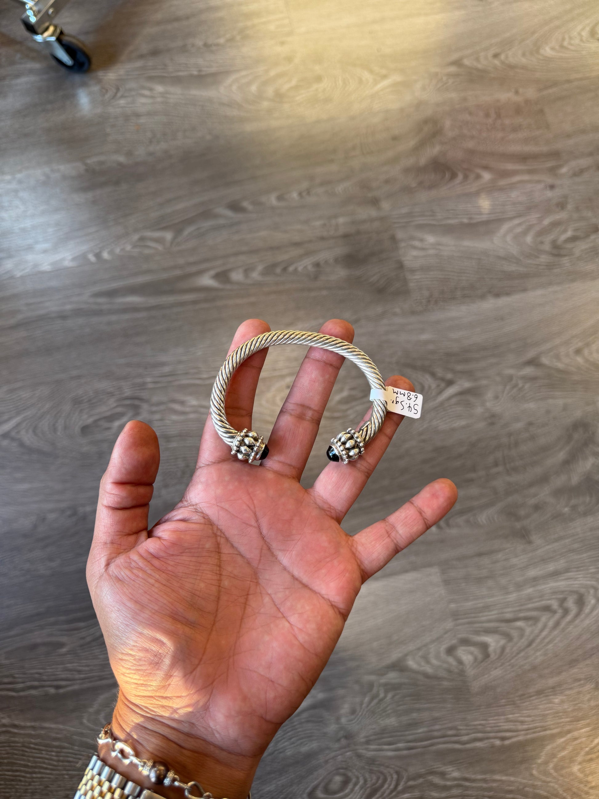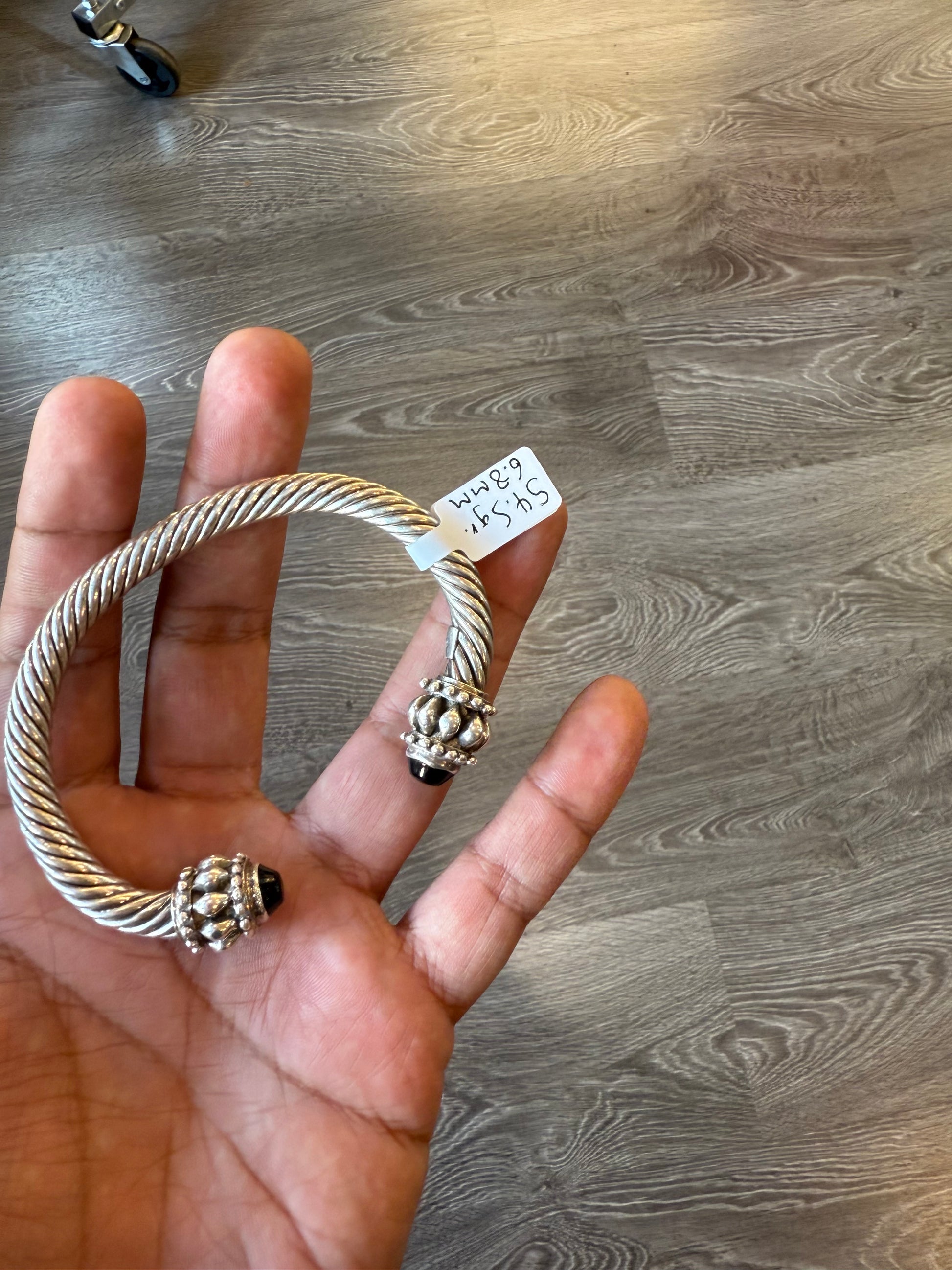 .925 Sterling solid silver onyx cuff bracelet bangle 8”