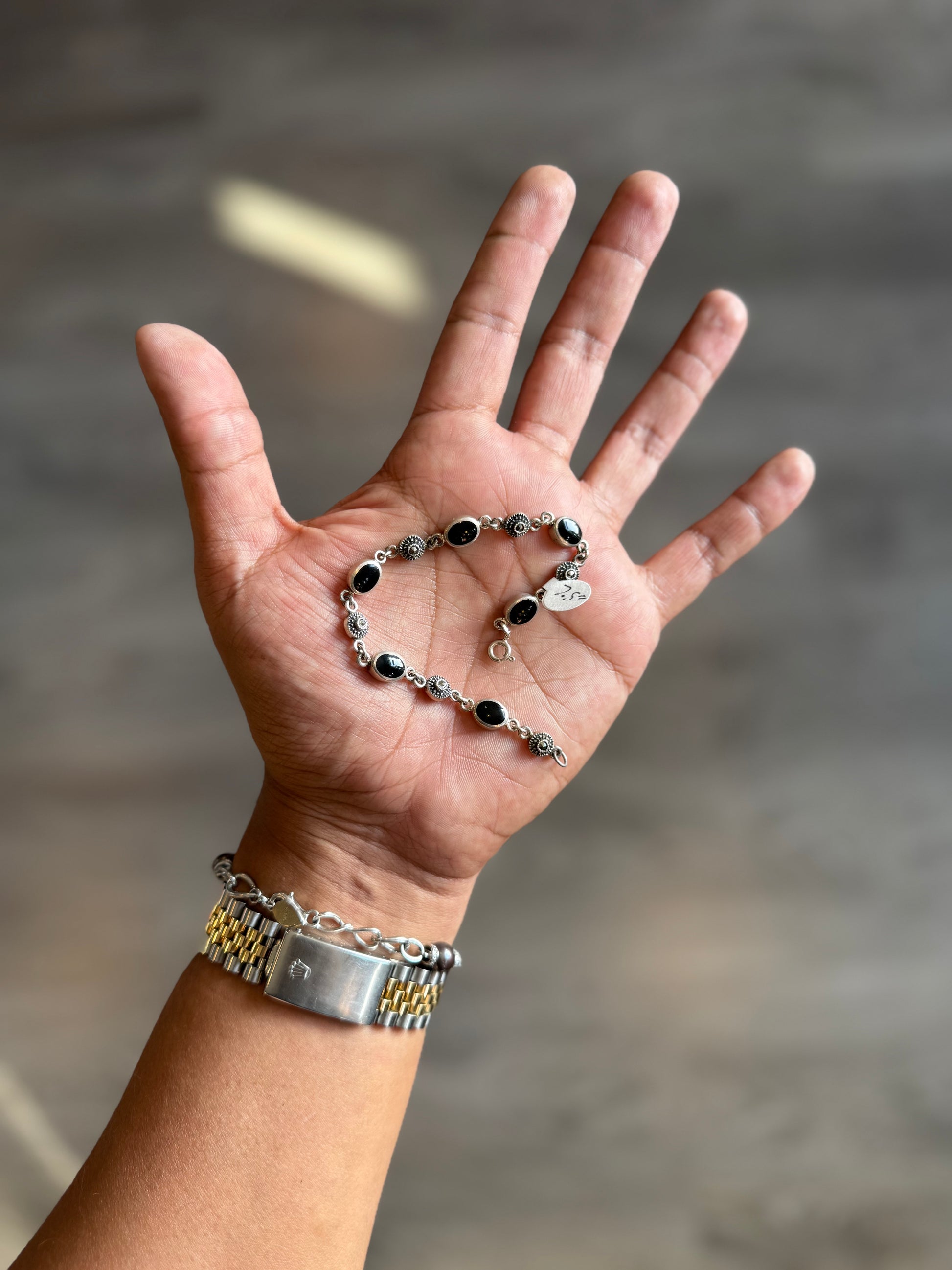 .925 Sterling silver onyx bracelet 7.5”