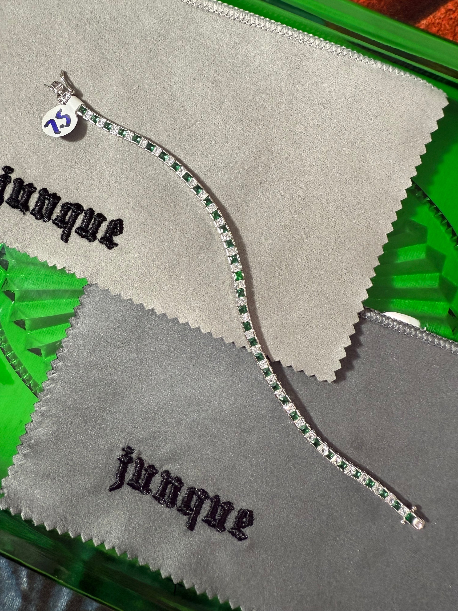 .925 Sterling silver emerald green gemstone CZ bracelet 7.5”
