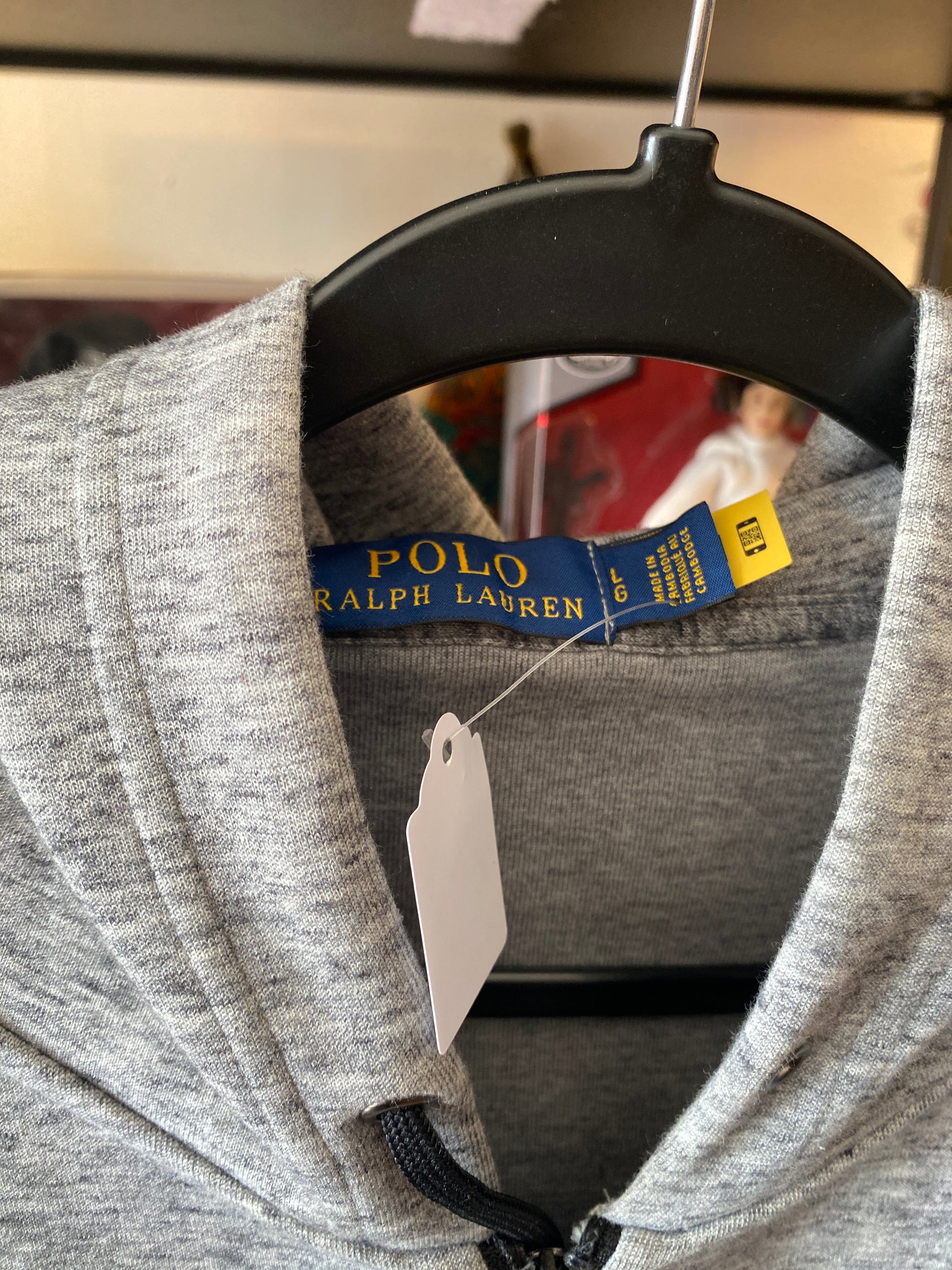 Polo Ralph Lauren Light Heather Grey Zip Up Hoodie Sz Large