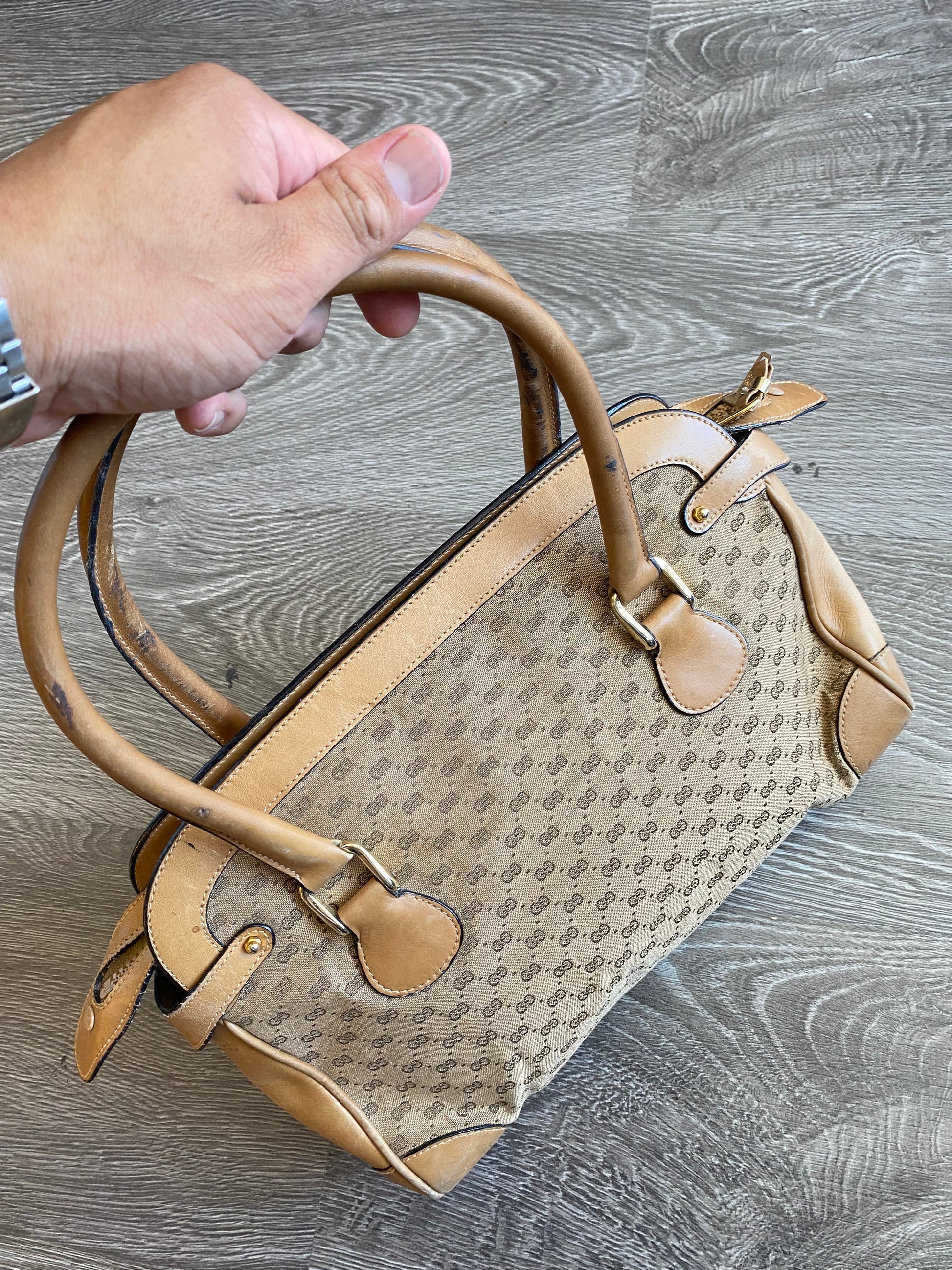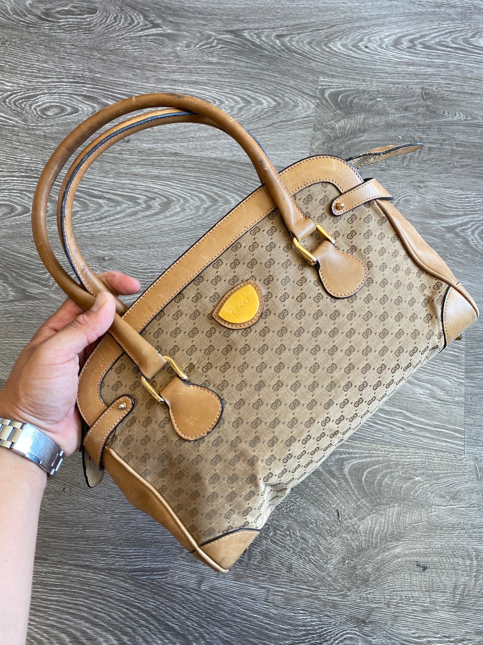 Vintage Gucci Micro GG Canvas Top Handle Leather Hand Bag Handbag Purse Light Brown