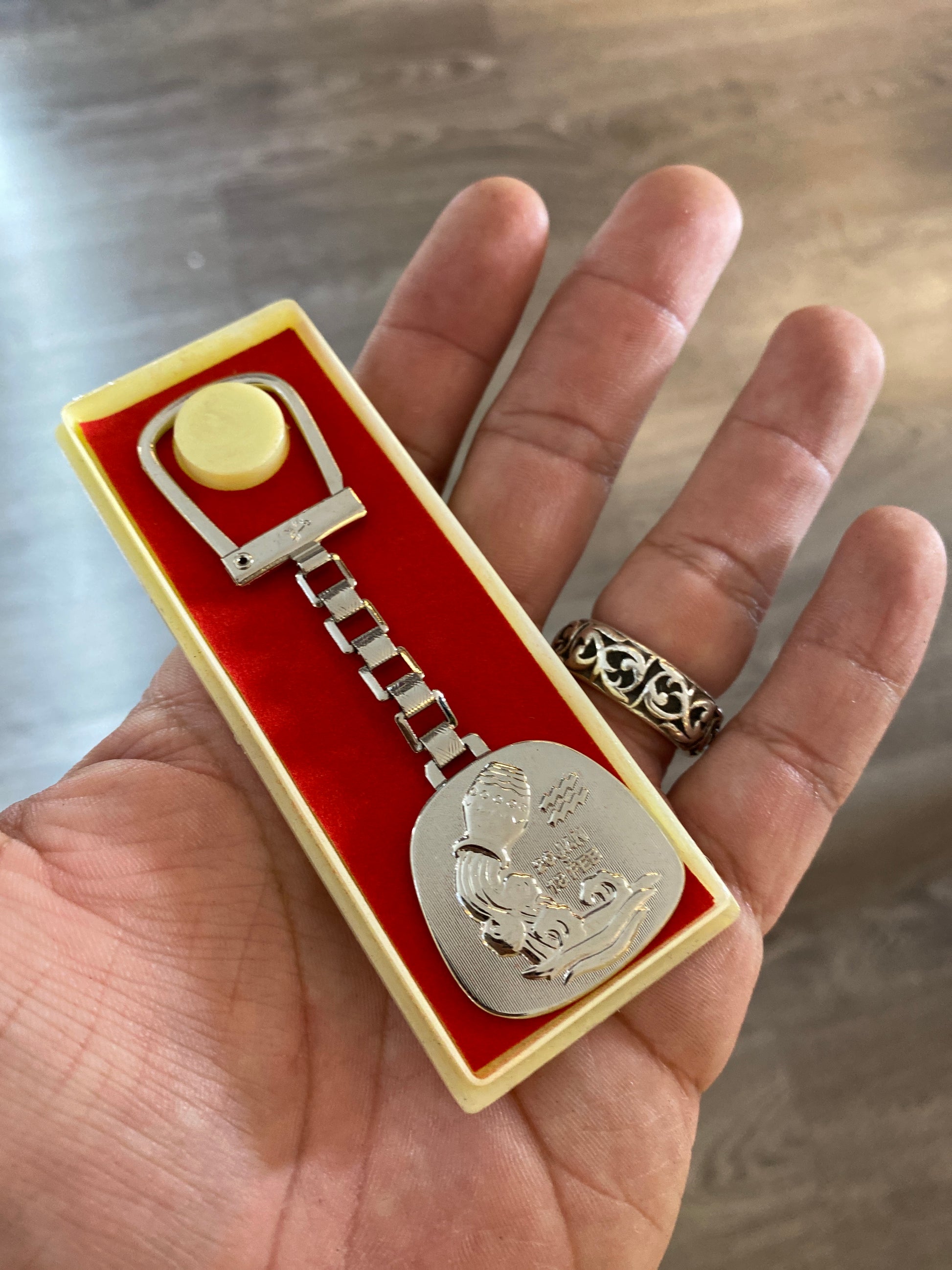 Vintage Novelty Silver Link Tone Aquarius Zodiac Keychain