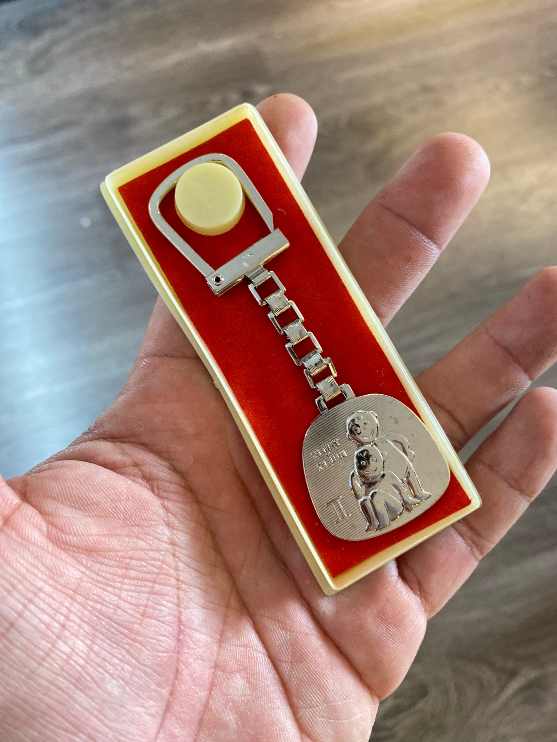 Vintage Novelty Silver Link Tone Gemini Zodiac Keychain